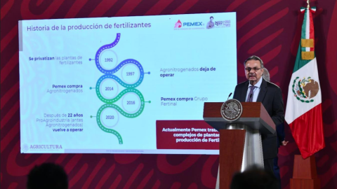 El director general de Petróleos Mexicanos (PEMEX), Ing. Octavio Romero Oropeza, presentó los avances del Programa Federal de Fertilizantes para el Bienestar 2022, correspondiente al Plan Antiinflacionario, durante la conferencia de prensa matutina del presidente de México, Andrés Manuel López Obrador, mismos que reflejan el 73 por ciento de los envíos realizados entre los primeros nueve estados planteados como objetivo principal.