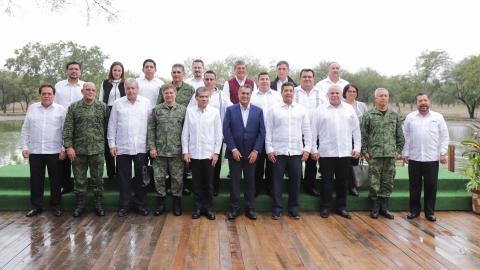 En las instalaciones de la 7/a. Zona Militar en Apodaca, los gobernadores Francisco García Cabeza de Vaca, de Tamaulipas; Jaime Rodríguez Calderón, de Nuevo León; y Miguel Riquelme Solís, de Coahuila, sostuvieron una reunión de evaluación del Operativo de Seguridad Noreste, suscrito el año pasado por los Gobiernos de las 3 entidades, en colaboración y coordinación con las Fuerzas Armadas, a fin de fortalecer la seguridad y preservar la paz en la región.